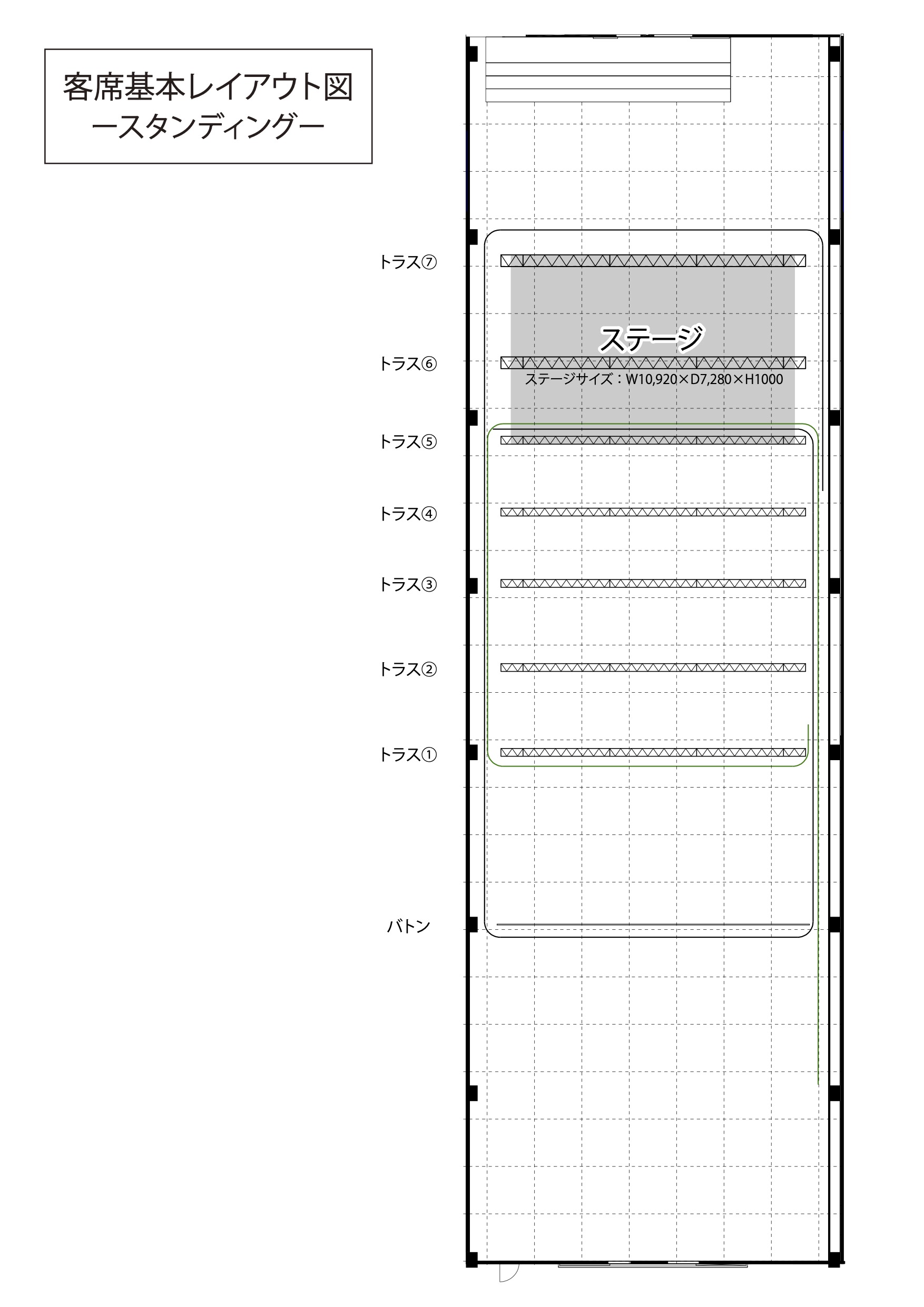 48分割の可動式ステージを自由にレイアウトできます。 標準セッティングで W10.9m×D7.3m